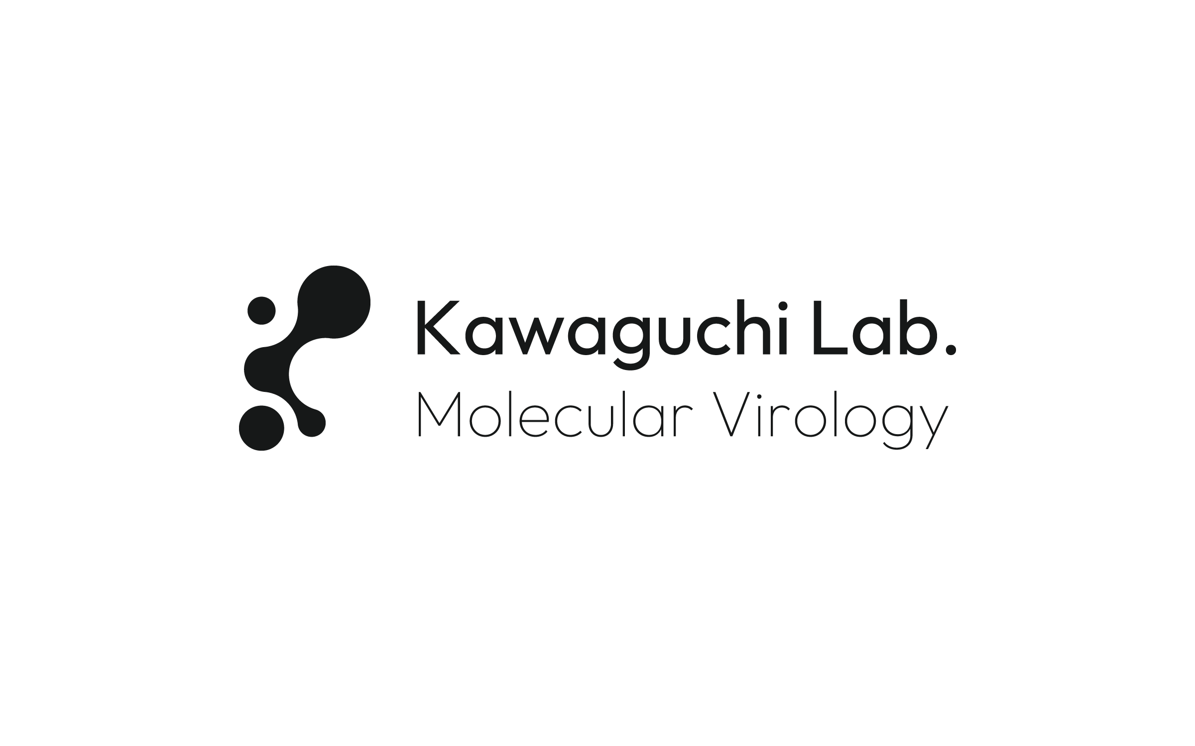「Kawaguchi Lab.」の頭文字である「K」と「L」をベースに、ウイルスと宿主の相互作用、すなわち「侵入・増殖・応答」といった一連のプロセスを、有機的なフォルムとして再構築したロゴデザインです。