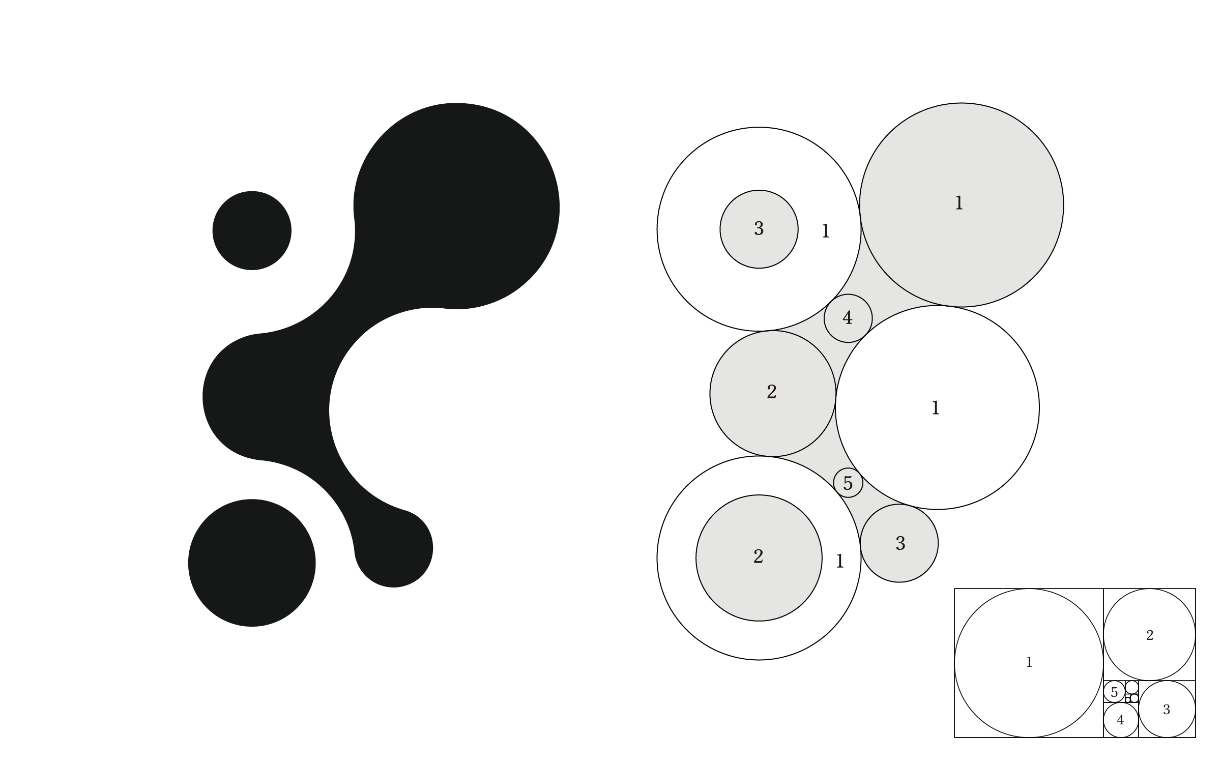 造形は感覚に依存せず、複数の円による黄金比に基づいて構築。